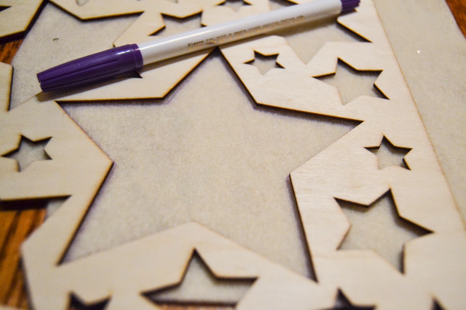 I am ready for Christmas to be here and decided it was time to start thinking about our Christmas decorations for this year. I have decided to make a 'rustic tree' all from homemade decorations! (If I can make enough to fill a tree in time!) I have some really fun ideas! The first one I decided to try was these DIY felt ornaments. I knew I wanted to do some stars and I found the perfect stencil at JoAnn's, it had many different size stars. I also want to do candycanes, bells, and snowmen but they will be for another post. These little guys were fairly simple, a little time consuming, but I absolutely love the finished product. I am going to walk you through how I made them step by step.